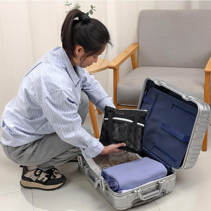 - 🚿Quick-Dry Design – Specially designed with breathable mesh to allow airflow, helping the bag dry quickly after use in the shower. If you hit the beach you don’t need to worry about any sand stuck in between your stuff as it will just fall through the mesh.If you hang the shower bag in the bathroom, it will dry quickly even if it is wet with water
