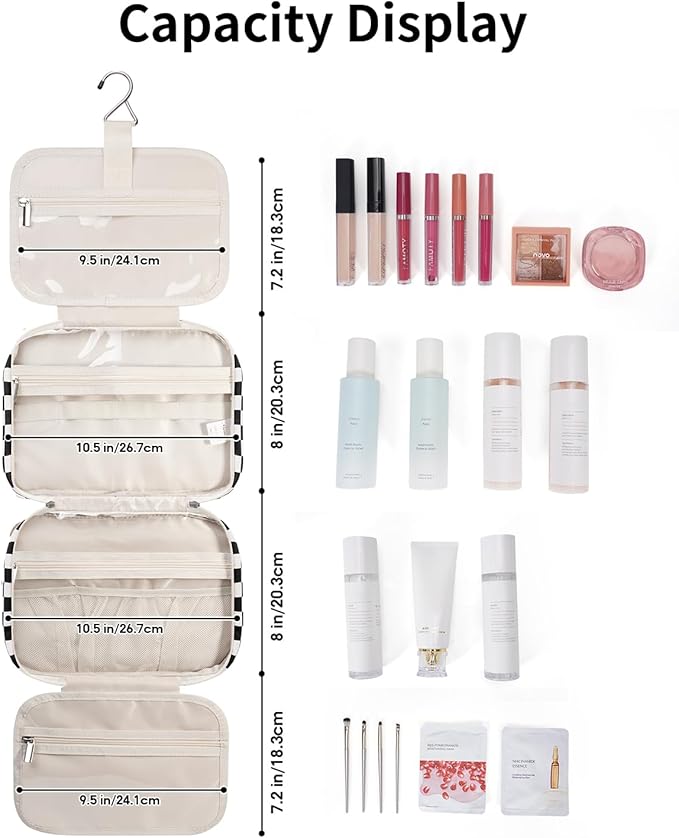 - PLENTY of ROOM - Fold size 10.75x8x5.5 inch, easily fit travel-size toiletries as well as makeup like shampoo, conditioner, lotion, toothpaste, toothbrushes, hair brush, shaving kit and a few extra items