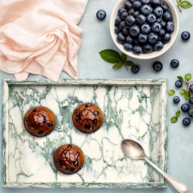 - 【INGENIOUS WORKMANSHIP】- Our luxury serving trays cut neatly and without burrs. The polished surface of the marble tray is particularly smooth and delicate to touch. Easy to clean. Heat resistant. Never fade. Sturdy and Durable. Ideal gift for housewarming, festival, parties.