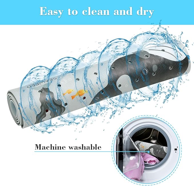 - Durability & No smell: Our non slip bath mat was made of high quality PVC material, it is durable, no smell and friendly to kids