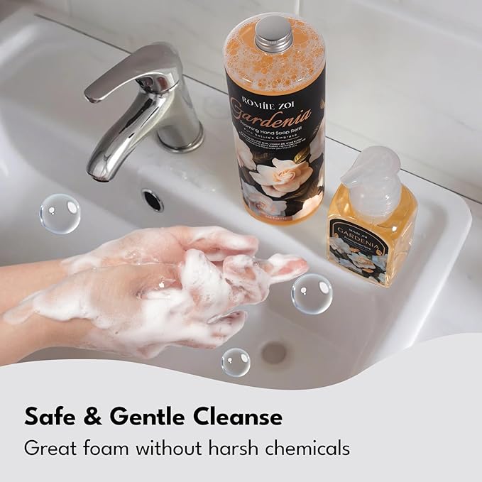 - 【Natural Elengant Gardenia Fragrance】Formulated with organic essential oils and plant-based extracts, this Gardenia Foaming Hand Soap delivers a naturally uplifting fragrance. Free from harsh chemicals, parabens, and cruelty, ensuring a pure and safe experience.