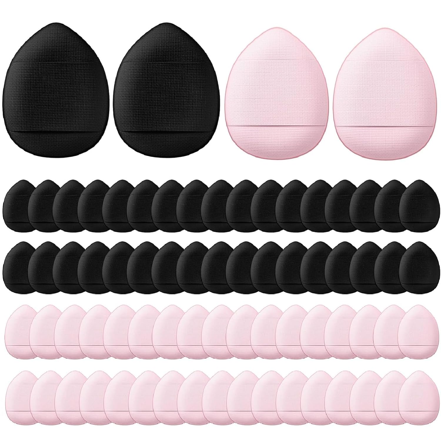 Gerrii 72 Pcs Finger Powder Puff Mini Makeup Sponge Soft Beauty Makeup Blender Puff for Foundation, Face Powder, Under Eye Setting, Concealer, Repair Cream, Cosmetic Tool(Pink,Black)