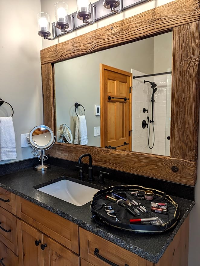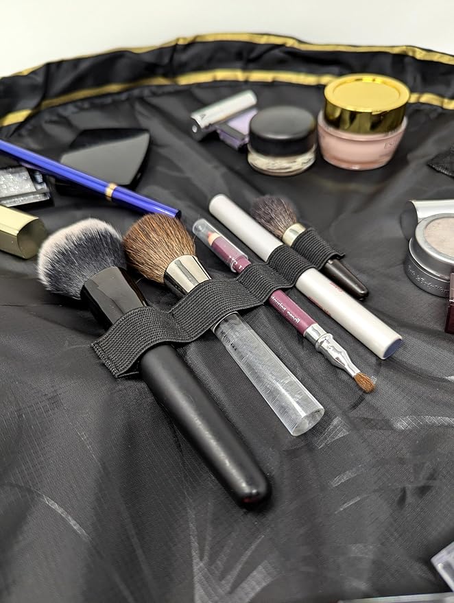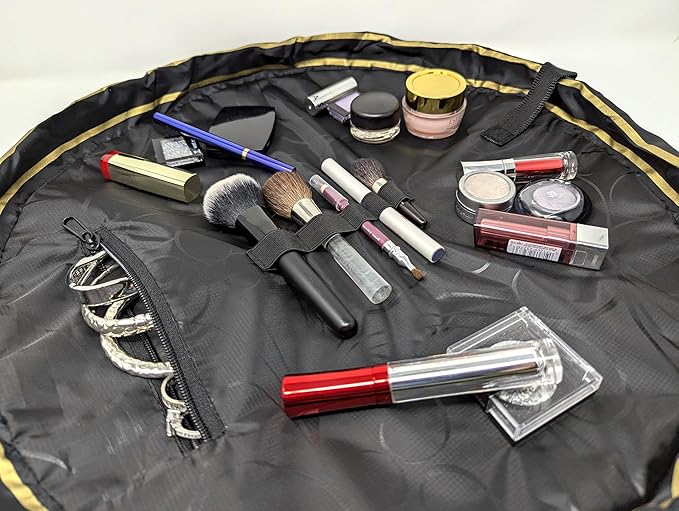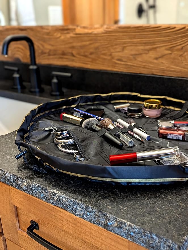- FAST CLEANUP, NO MESS: Lay flat to instantly access all your makeup, then cinch closed for effortless cleanup – no more digging through cluttered bags or bathroom counters.