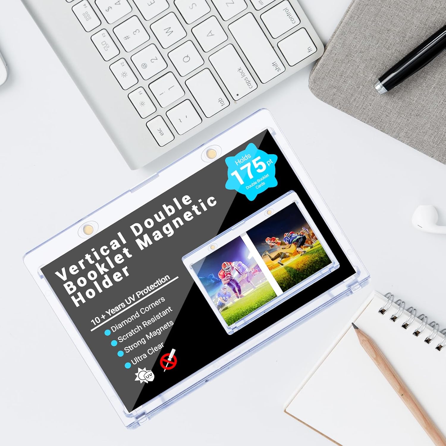 2-Pack Vertical Booklet Magnetic Card-Holder - 175PT Booklet Case-UV Protection, One Touch Booklet Magnetic Card Holder Fit for National Treasure Cards, Script Cards Storage and Playbook Cards Display