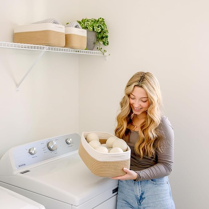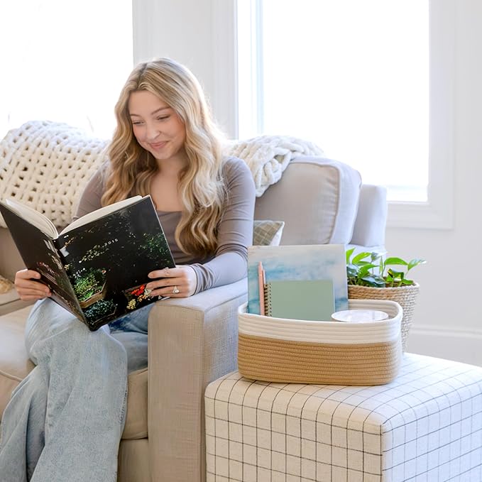 - Safe, Natural Cotton Organizer Bins: Crafted from the highest quality material in the market, our storage bins are oh-so-sturdy (and cute) and ready to take on little humans. They’re 100% safe, so you can rest easy if teething toddlers take a nibble. Reinforced Hidden Handles: Now you see ‘em, now you don’t! With completely hidden handles that blend seamlessly into the rope basket, you’ll be the Houdini of home organizing. They’re even double-stitched and reinforced for extra heavy loads!