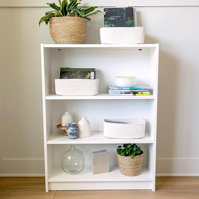 NaturalCozy 11.8"x8"x4.5” Storage Baskets for Shelves 3 Pack | Cotton Rope Woven Small Baskets for Organizing | Small Storage Bins for Nursery, Bathroom, Closet, Cube Shelf, Decorative, Gift Basket