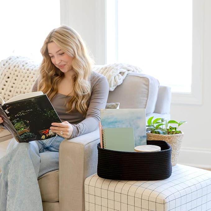 - Safe, Natural Cotton Organizer Bins: Crafted from the highest quality material in the market, our storage bins are oh-so-sturdy (and cute) and ready to take on little humans. They’re 100% safe, so you can rest easy if teething toddlers take a nibble. Reinforced Hidden Handles: Now you see ‘em, now you don’t! With completely hidden handles that blend seamlessly into the rope basket, you’ll be the Houdini of home organizing. They’re even double-stitched and reinforced for extra heavy loads!