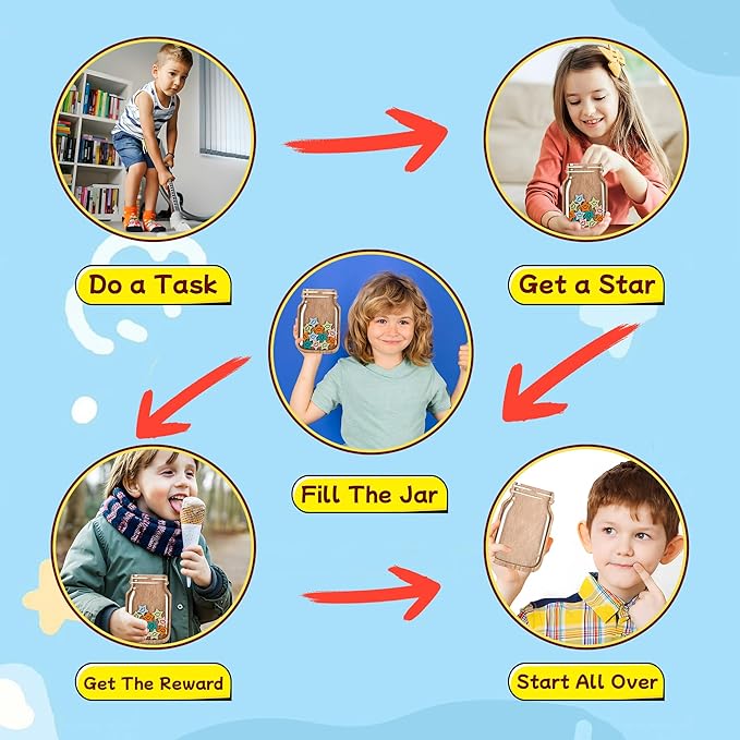 - Personalized Stars Jar:The behavior chart for kids at home is ideal for toddlers aged 3-10 years old, helping them practice good habits, and take pride in their accomplishments. Kids will be amazed by our visual schedule and star jar reward system which tracking their progress.