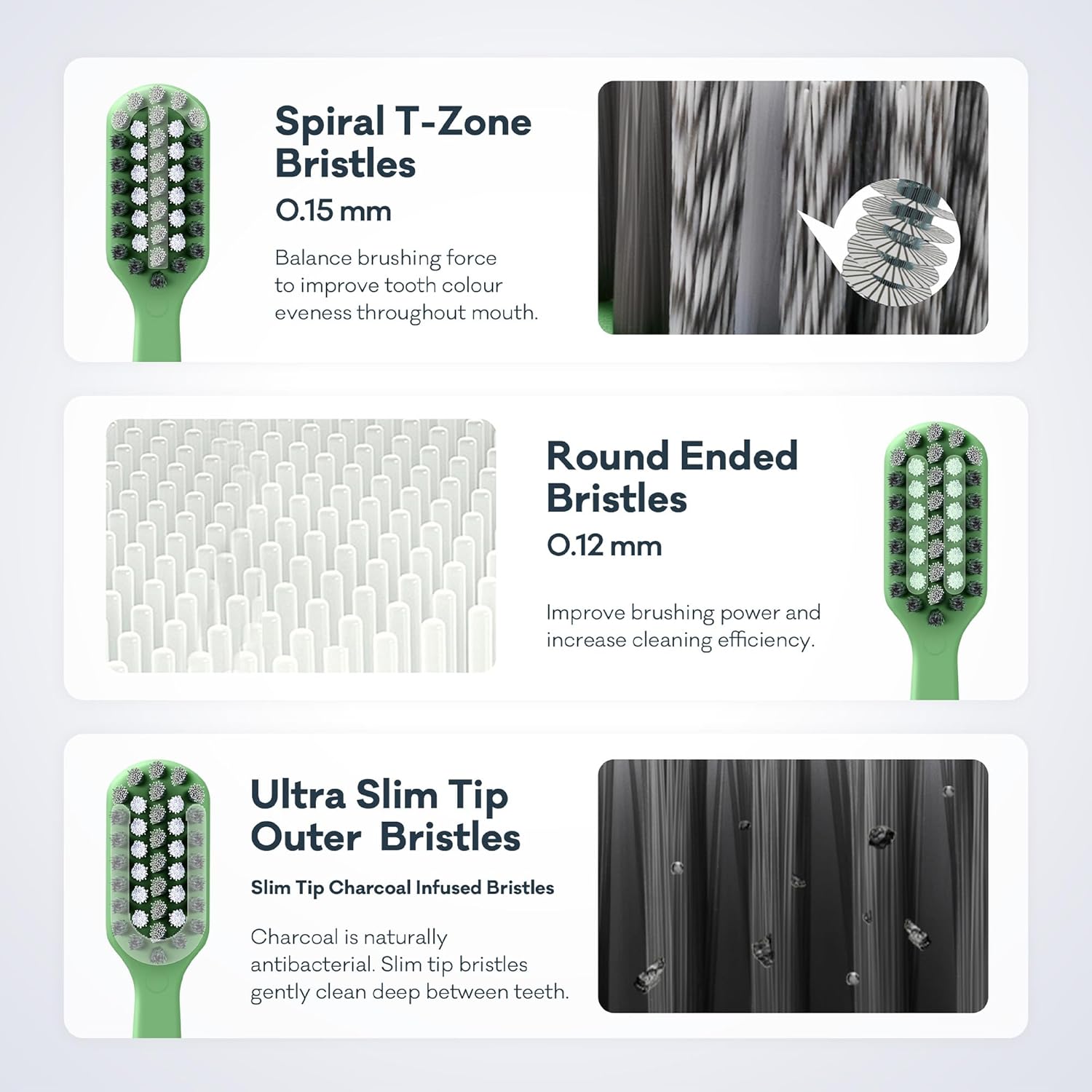 - Charcoal Infused Bristles: Charcoal infused slim-tip bristles reach deep between the teeth for an effective whole mouth clean. x3 more effective at stain removal versus a standard toothbrush
