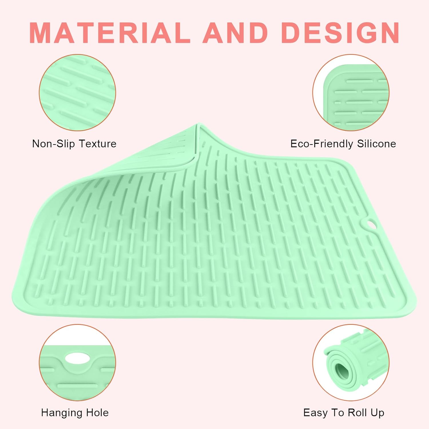 AMIJEAL Oversize Silicone Heat Resistant Mat for Hair Tools, Curling Iron Mat, Hot Tools Holder, Portable Flat Iron Hair Straightener Pad Cover for Travel Vanity Salon(14.2" x 11.0")