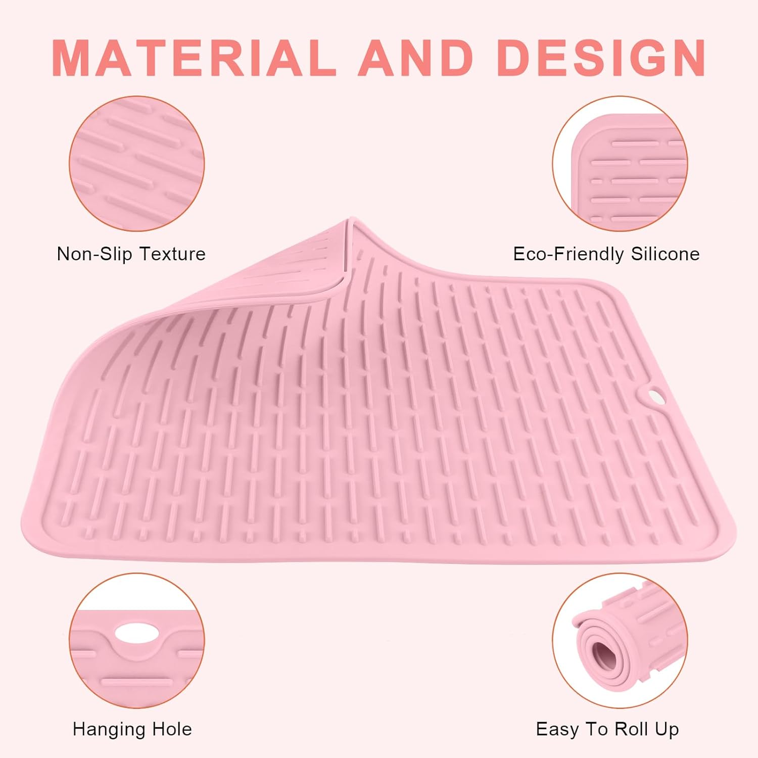 AMIJEAL Oversize Silicone Heat Resistant Mat for Hair Tools, Curling Iron Mat, Hot Tools Holder, Portable Flat Iron Hair Straightener Pad Cover for Travel Vanity Salon(14.2" x 11.0")