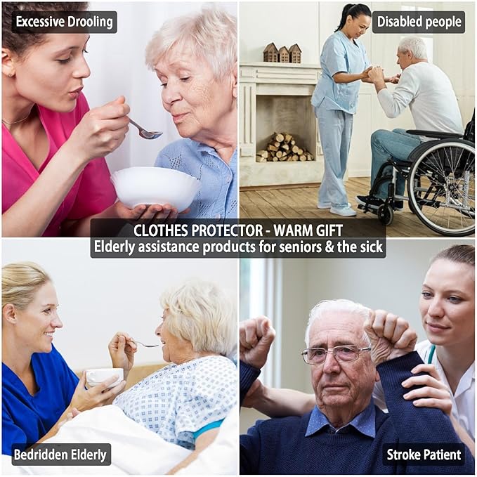 - ELDERLY ASSISTANCE PRODUCTS: 3 Pack Adult Bibs feature adjustable hook and loop closure and string ties. Adult bibs are perfect for the elderly, bedridden patients at home, restaurants or picnics, and are also ideal dementia products for elderly homes, caregivers, nursing homes, and hospitals