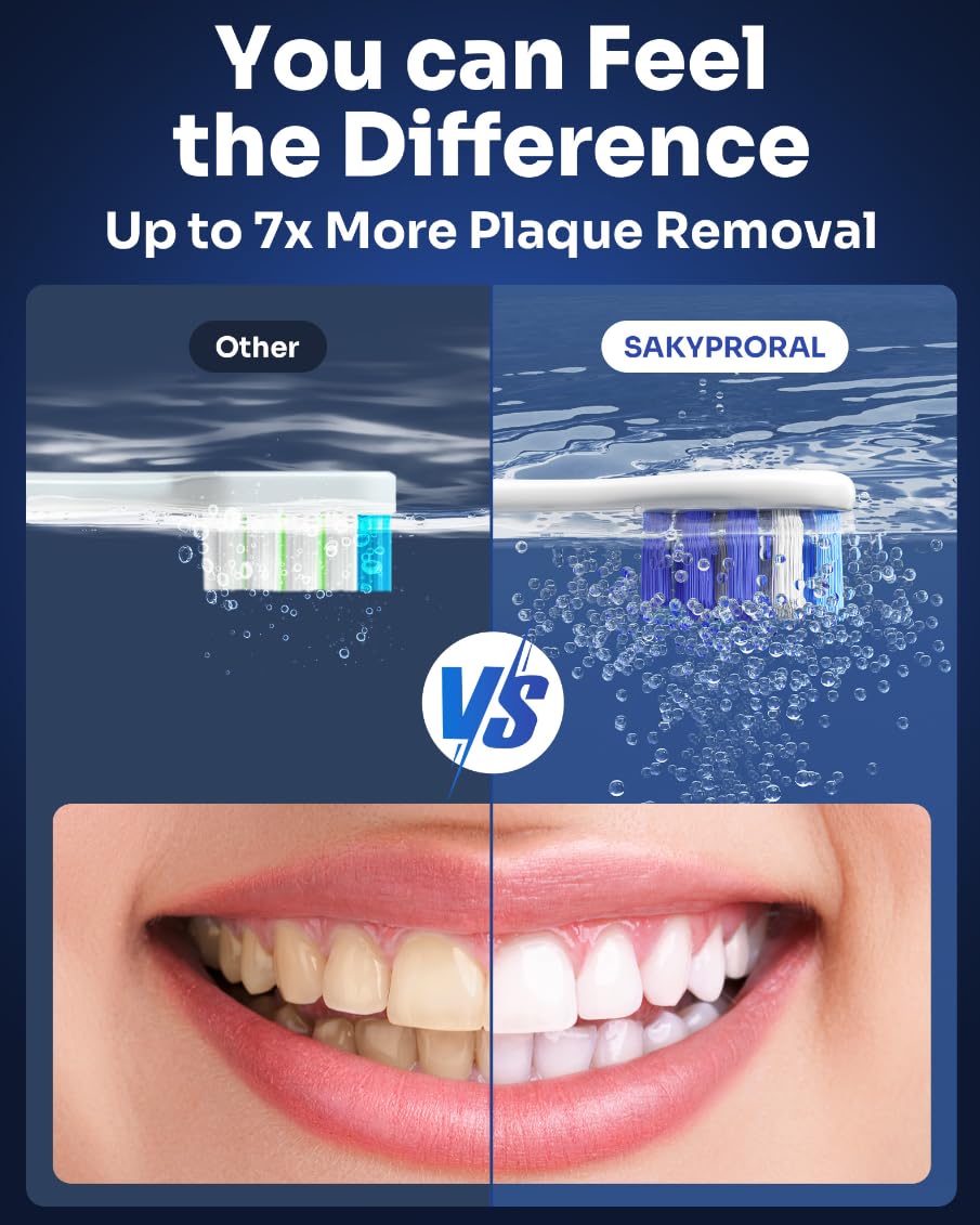 - 150 DAYS RECHARGEABLE BATTERY LIFE & TRAVEL CASE: The exquisite and portable travel case makes G5S electric toothbrush for adults business weeks, weekend camps for kids, and all families'overseas runs all pass without a recharge hunt.