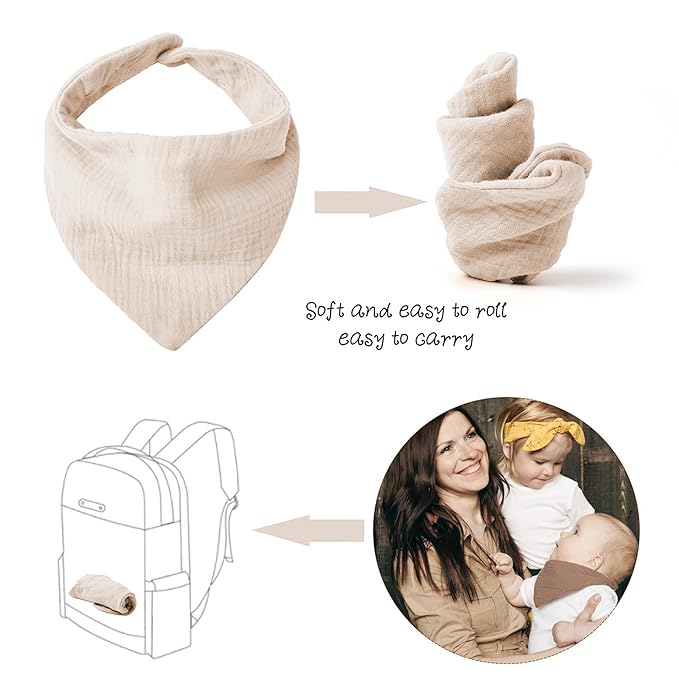 - Multi-Functional Uses: These soft muslin baby bandana drool bibs can be used in many different ways: they can be used as burp cloths, baby bibs, washcloth, and wipe clothes. Crafted with ultra-soft fabric to ensure your baby stays comfortable
