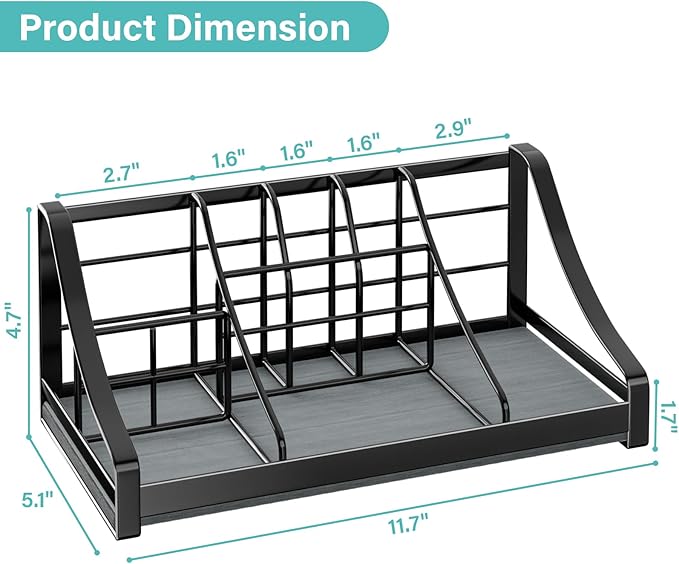 - Large Capacity Toothbrush Holder: Designed with 7 different sizes slots,product size :11.7"L x 5.1"W x4.7"H,this bathroom countertop organizer provide a neat solution to meet different bathroom accessories storage like standard and electric toothbrushes, toothpaste, mouthwash bottle, tongue scrapers, bathroom cups, combs, cosmetics, razor, dental floss etc, large capacity keeps your bathroom countertop neatly organized within easy reach. Maximizing space efficiency on your limited bathroom countertop.