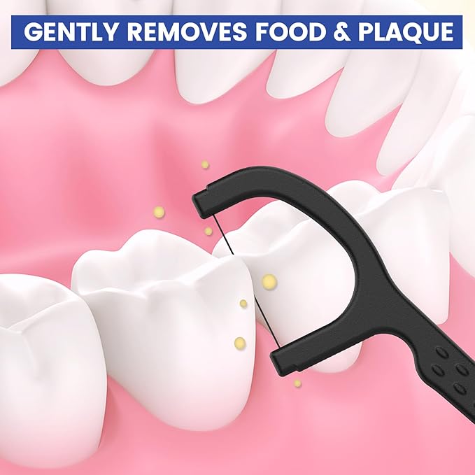 - HIGH QUALITY, SHRED RESISTANT: Bamboo charcoal floss,it has extremely high toughness, is not easy to break, and unique shape design makes it easy to access to those hard to reach places for a deep clean.The dental floss handle is made of corn starch,environmentally friendly and degradable.Mint flavor, leave your mouth feeling fresh and clean.