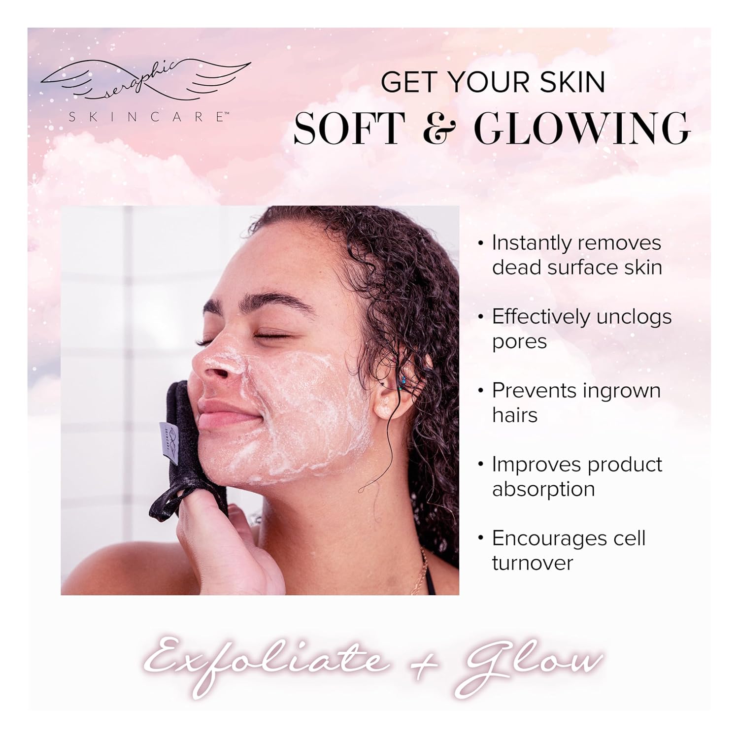 Seraphic Skincare Premium Exfoliating Facial Mitt 2 Pack – 100% Vegan Dual-Sided Face Mitten with Viscose & Washcloth – Facial Scrub Pad for Gentle Cleansing & Exfoliation – Natural Dead Skin Remover