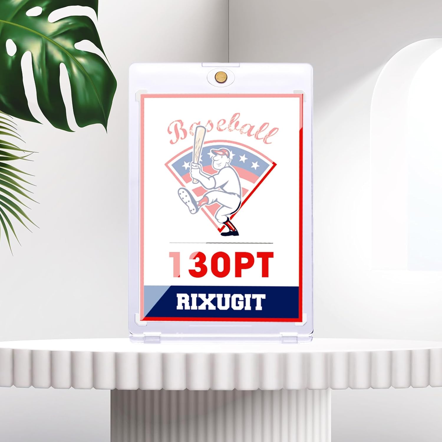 130pt Magnetic Card-Holders for Trading Cards - 15-Pack One Touch Card Case with Stronger Magnet, UV Protection, Card Protectors Hard Plastic, Card Sleeves Display Case for Baseball Card Sports Cards