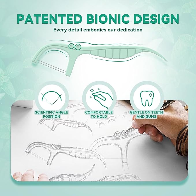 - 【ERGONOMIC DESIGN】Our dental floss boasts a biomimetic design that harmoniously aligns with the natural contours of your hand, offering unparalleled ergonomic comfort. Crafted for durability, it resists breaking while being gentle on your teeth and gums