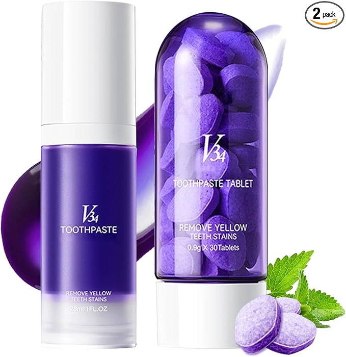 - Deep Cleaning: Purple toothpaste and toothpaste tablets have a powerful deep stain remover that effectively helps remove stubborn stains from your teeth, eliminating yellow undertones without leaving unwanted residue, allowing you to smile easily and confidently at parties, leisure and gatherings