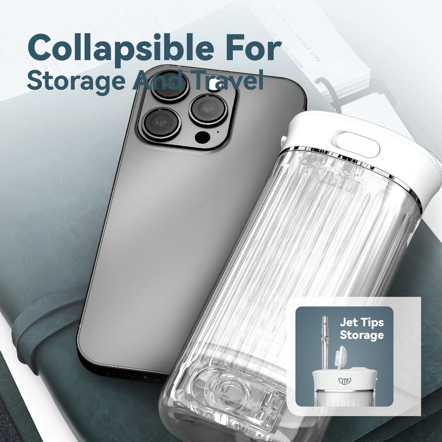 - 【𝐂𝐨𝐦𝐩𝐚𝐜𝐭 & 𝐏𝐨𝐫𝐭𝐚𝐛𝐥𝐞 𝐖𝐚𝐭𝐞𝐫 𝐅𝐥𝐨𝐬𝐬𝐞𝐫】JTF portable water flosser features one unique setting with telescopic technology to allows the device to collapse into a smaller size for easy storage in a bag or suitcase when traveling