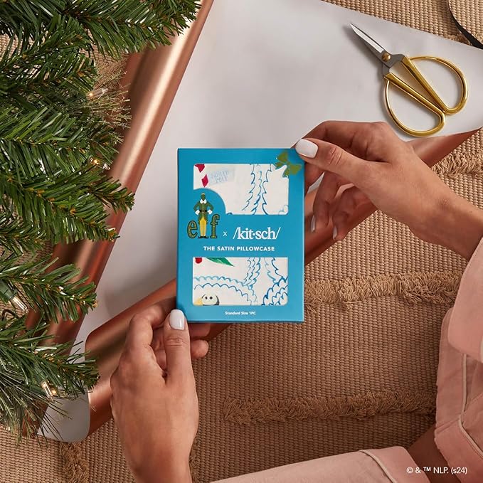 Kitsch x Elf North Pole - Satin Pillowcase with Zipper for Hair & Skin – Softer Than Silk, Cooling Pillow case, Wrinkle-Free, Machine Washable, Queen/Standard (19x26)