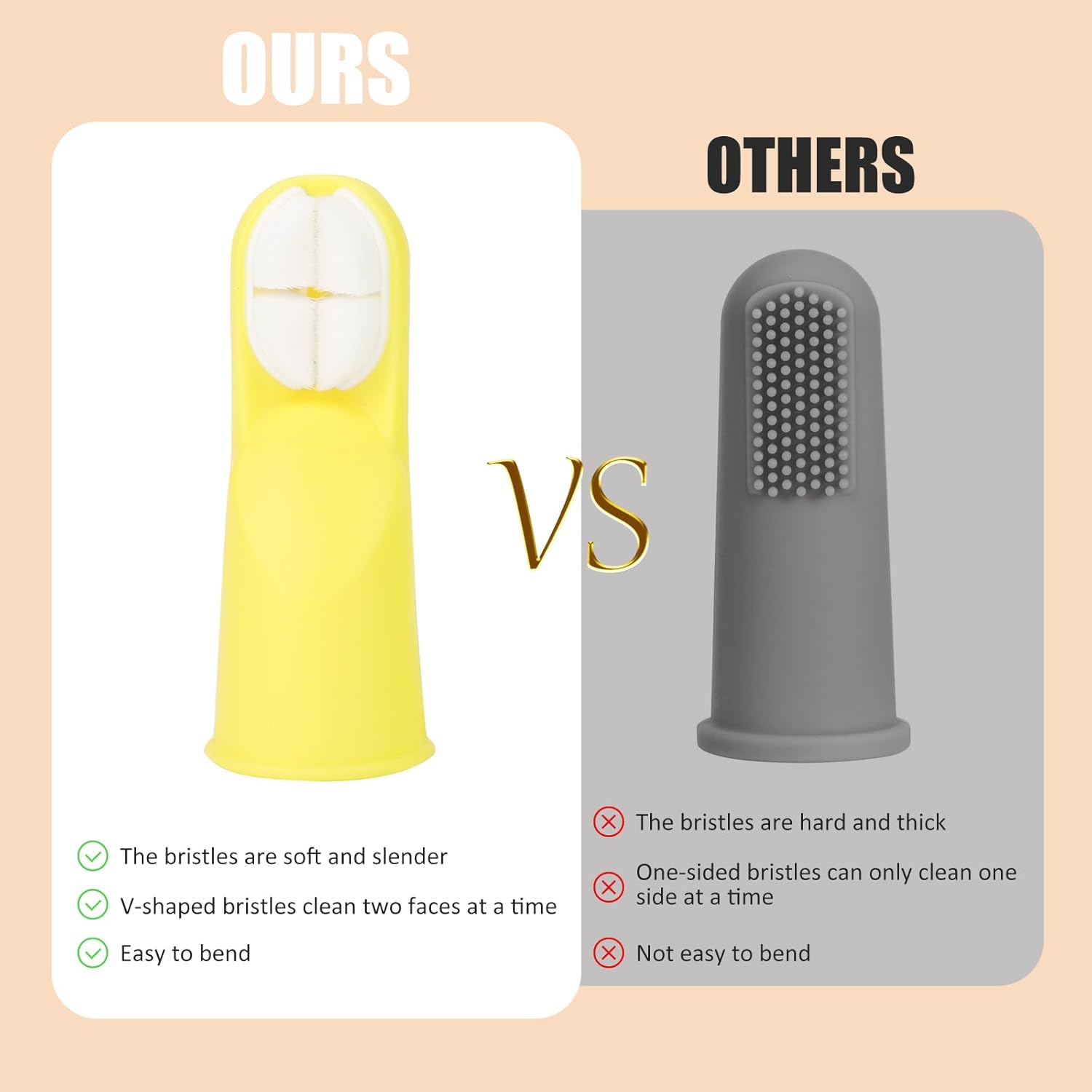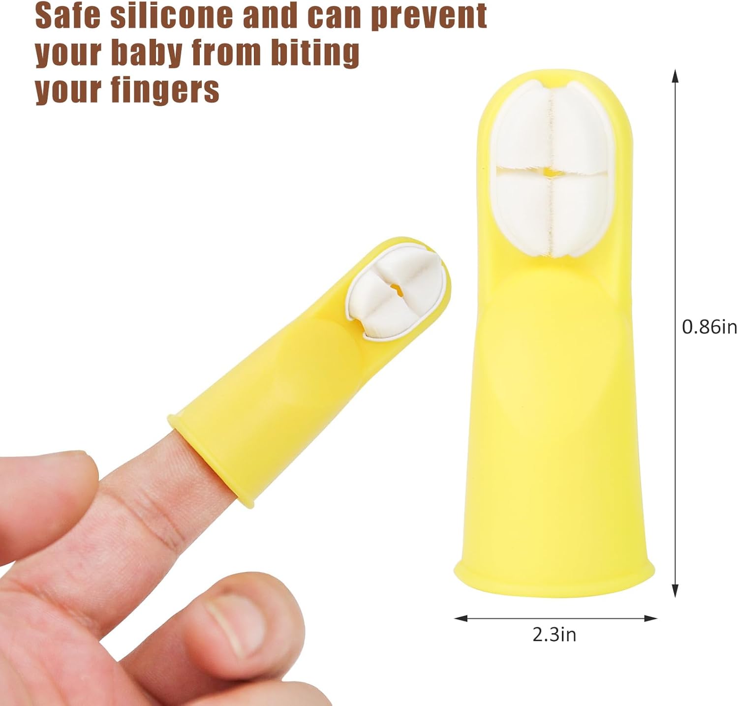 - User-Friendly Design: This baby finger brush is ergonomically crafted to fit comfortably on parents' fingers, making it super easy to handle. Unlike the silicone finger toothbrush on the market, we have adopted safe-bite design, prevent baby from biting your finger. The soft bristles wrap around each tooth, cleaning three surfaces at once. making it simple to clean baby's teeth effectively.