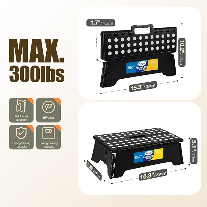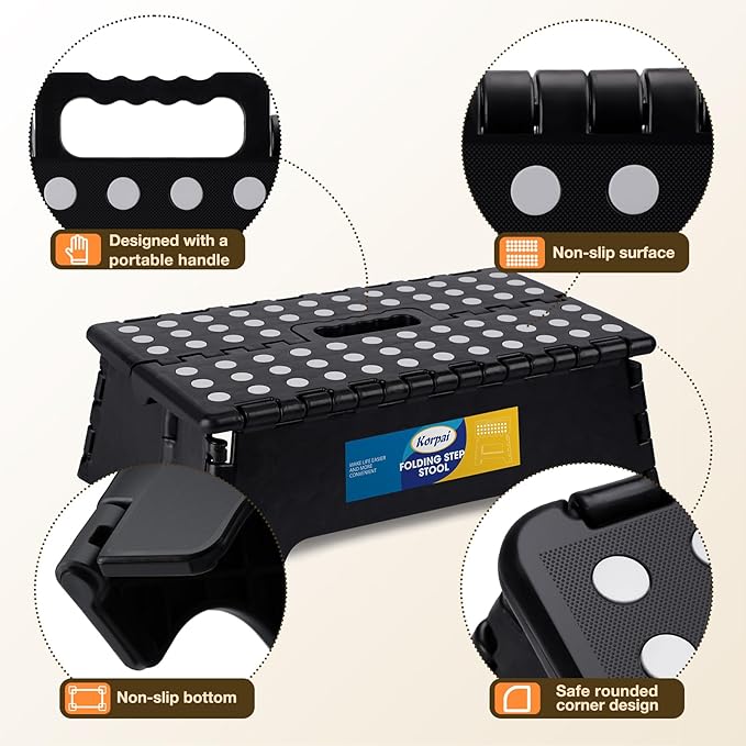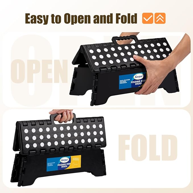 Korpai 5" Folding Step Stool for Adults and Kids 15-Inch Extra Wide Stool Holds Up to 300 lbs,Non-Slip Folding Stools with Handle,Compact Plastic Foldable Step Stool for Bathroom,Kitchen,ect
