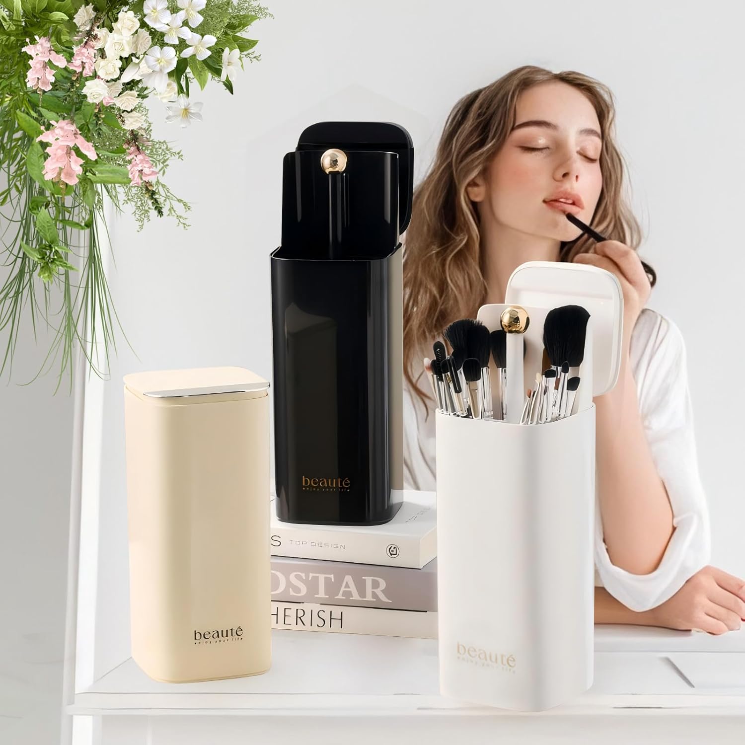 - 【Dustproof and Easy to Clean】Equipped with a delicate dustproof cover, our makeup brush holder with lid protects the brushes from dust and dirt, keeping the makeup brushes clean and hygienic. The makeup brushes holder is easy to clean, just rinse with water to make it clean again