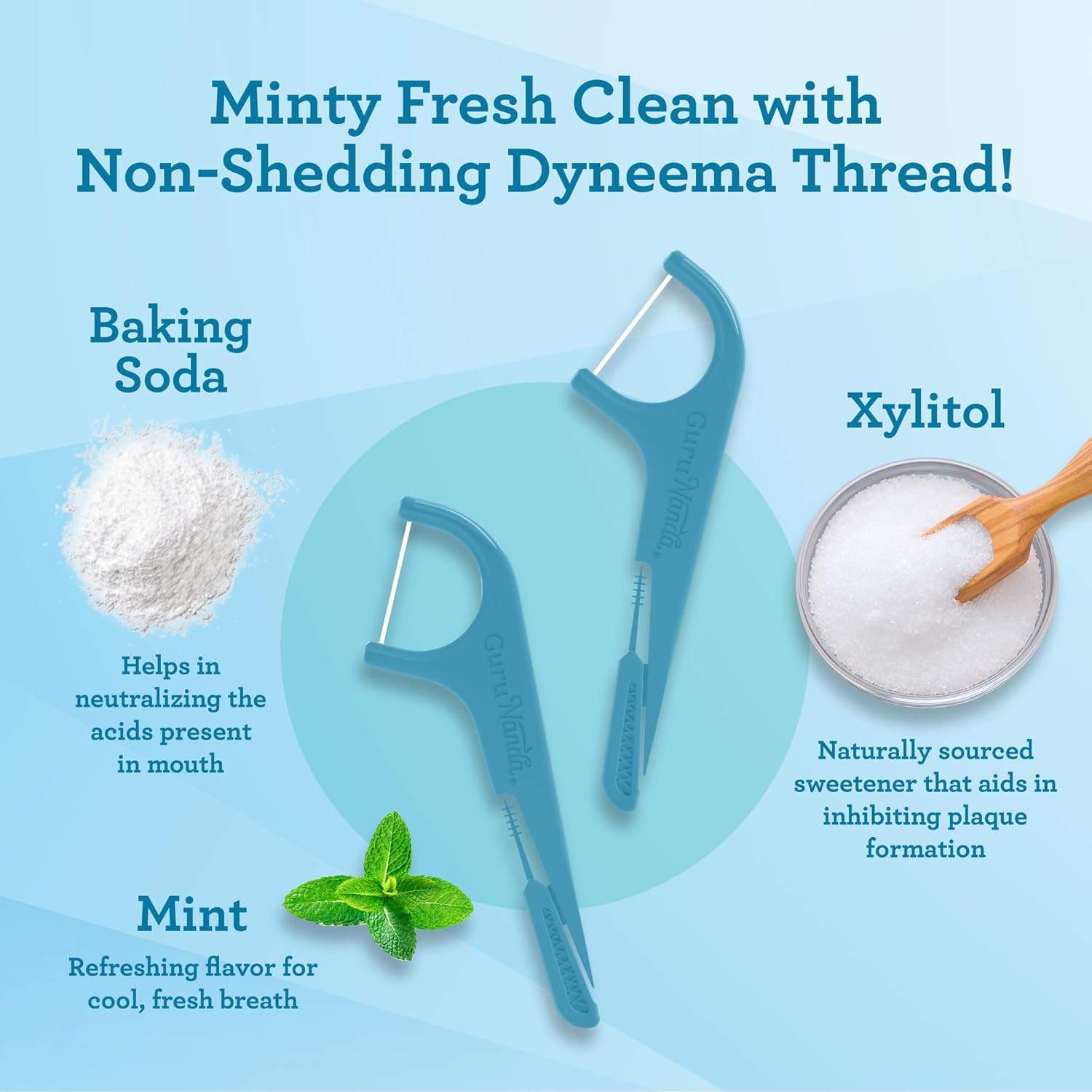 - Minty Infusion: Our Dyneema Thread Floss is gentle on gums, non-shredding, & enriched with xylitol & baking soda to help control plaque by neutralizing acids, keeping your smile clean & refreshed.
