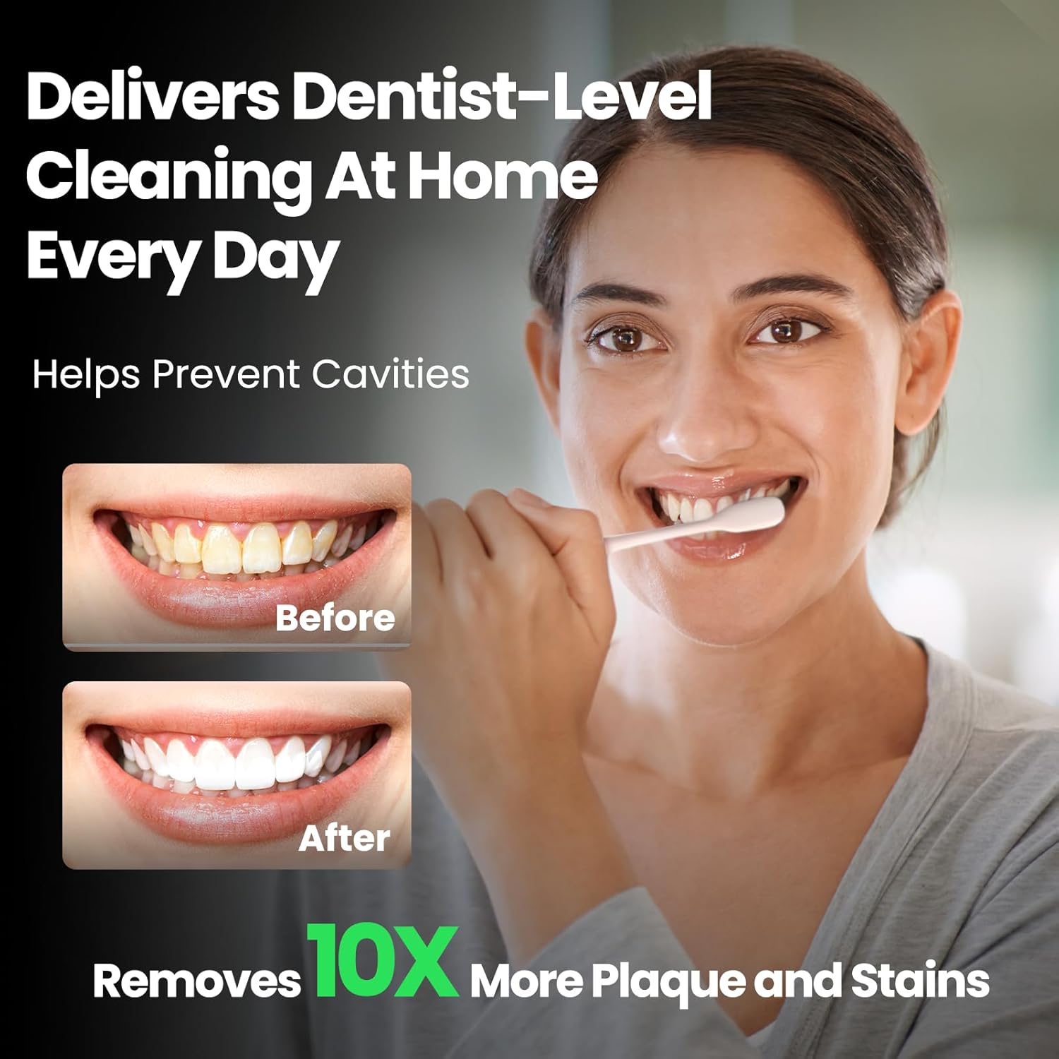- SMART TIMER & REMINDERS: With a built-in 2-minute timer and 30-second prompts, this cordless smart toothbrush helps you brush each quadrant evenly and effectively, just like dentists recommend.