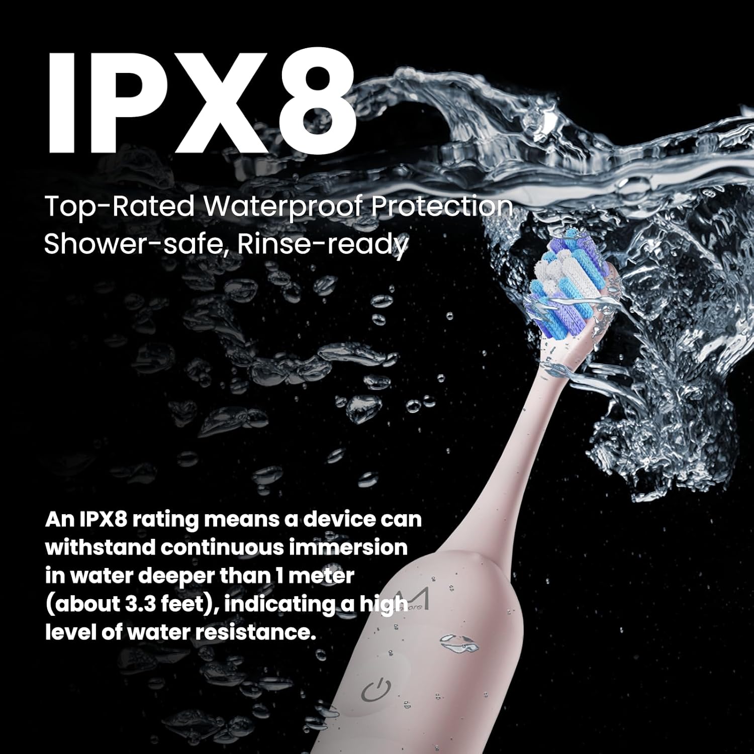 - IPX8 WATERPROOF & QUIET BRUSHING: Safe for shower use and easy to rinse, this battery toothbrush is fully IPX8 waterproof. With noise under 55 dB, it delivers a quiet, stress-free brushing experience every time.