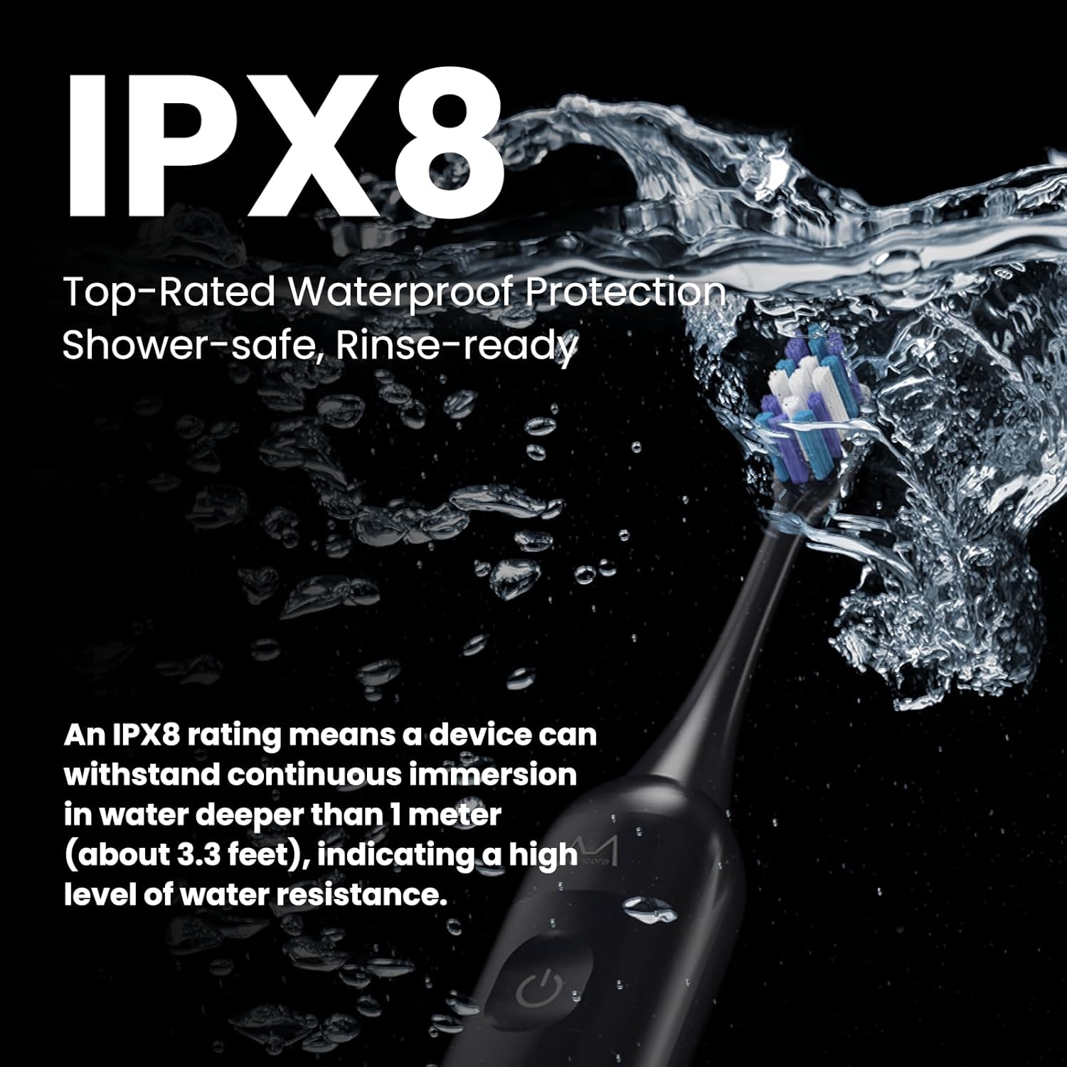 - IPX8 WATERPROOF & QUIET BRUSHING: Safe for shower use and easy to rinse, this battery toothbrush is fully IPX8 waterproof. With noise under 55 dB, it delivers a quiet, stress-free brushing experience every time.