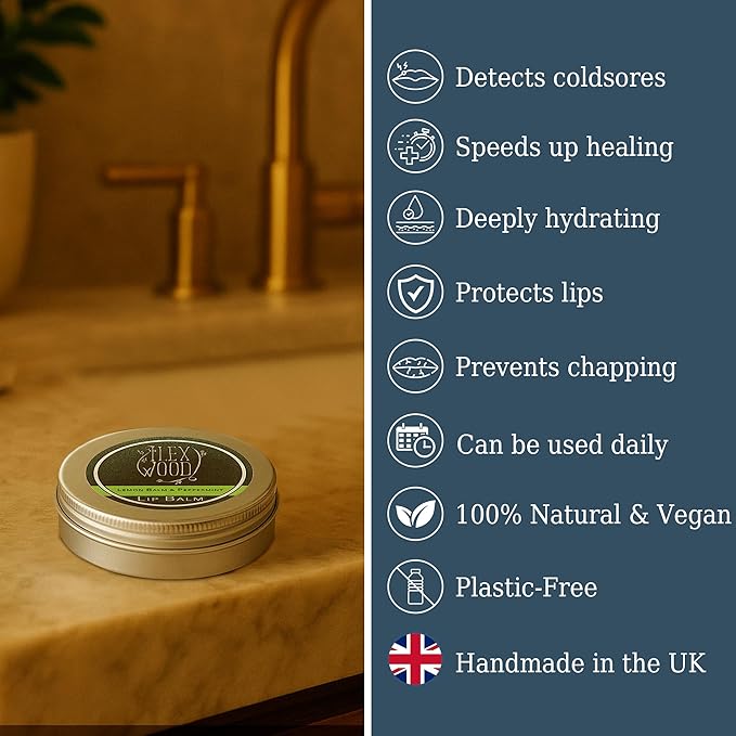 The Ilex Wood - Lip Balm Pack of 3 - Vegan Lemon Balm and Peppermint - All natural, coldsore prevention, cruelty free, plastic free, moisturising, handcrafted - 3 x 10ml (3 x 0.34 fl oz)