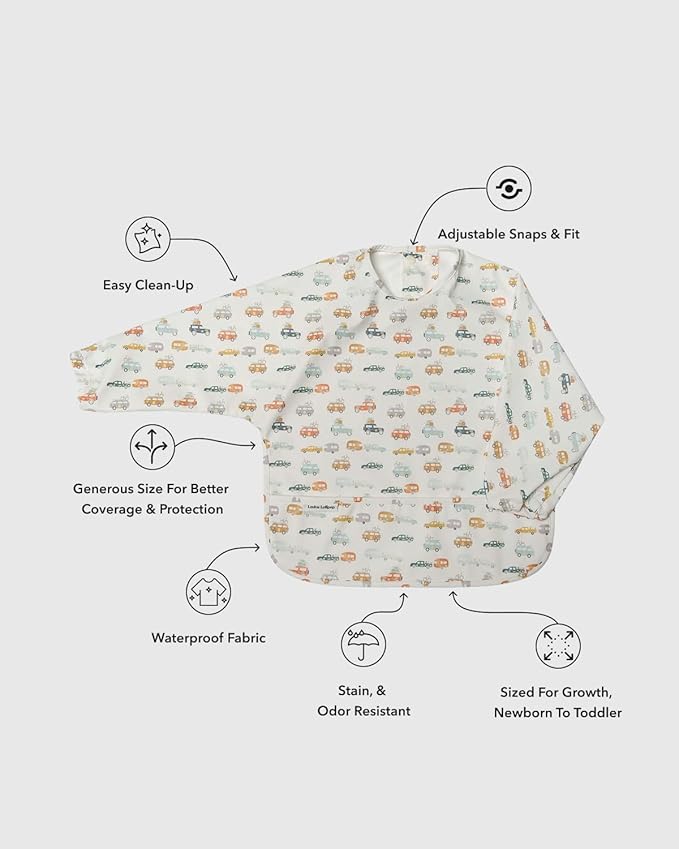 Loulou Lollipop Long Sleeve Mess Free Waterproof Bibs, for baby boys and girls 6-36 Months, Machine Washable, Travel Friendly