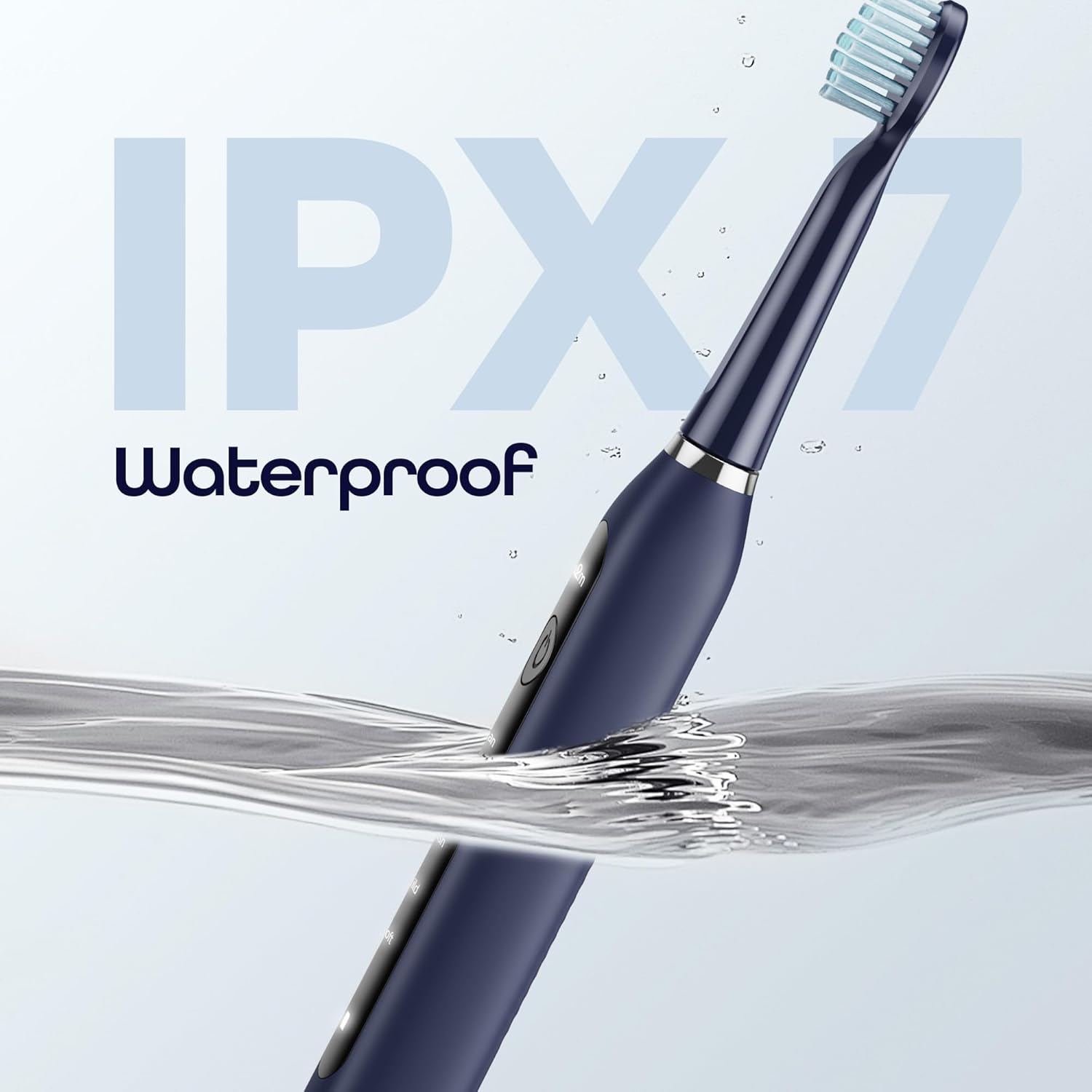 7AM2M Sonic Electric Toothbrush for Adults High Power Rechargeable Toothbrushes with 6 Brush Heads,5 Adjustable Modes, Built-in 2-Minute Smart Timer,3 Hours F Blue