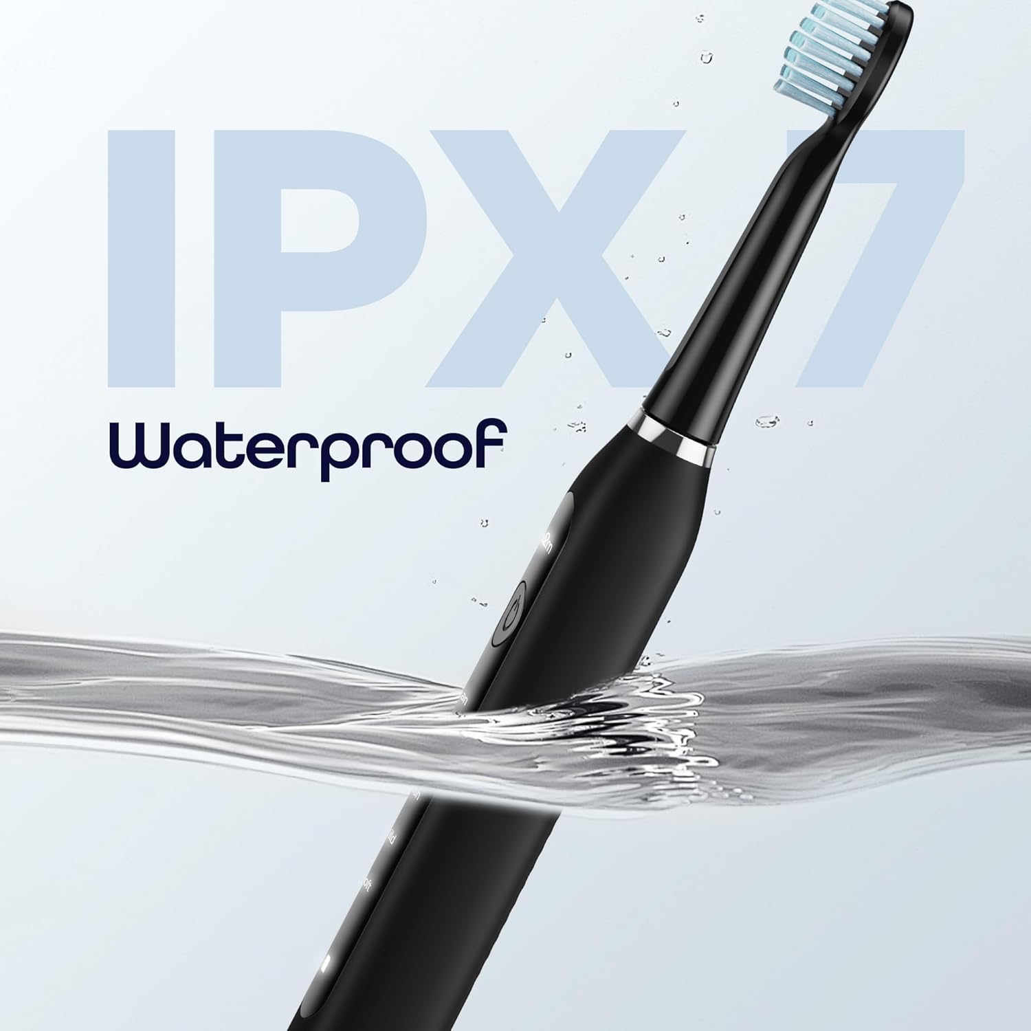 7AM2M Sonic Electric Toothbrush for Adults High Power Rechargeable Toothbrushes with 6 Brush Heads,5 Adjustable Modes, Built-in 2-Minute Smart Timer,3 Hours Fast Charge for 45Days Black