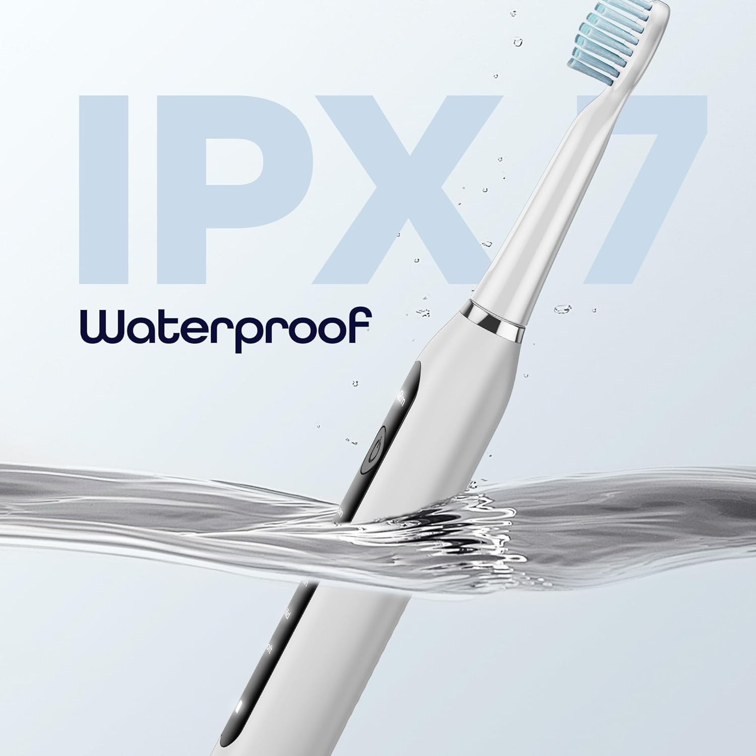 7AM2M Sonic Electric Toothbrush for Adults High Power Rechargeable Toothbrushes with 6 Brush Heads,5 Adjustable Modes, Built-in 2-Minute Smart Timer,3 Hours Fast Charge for 45Days White