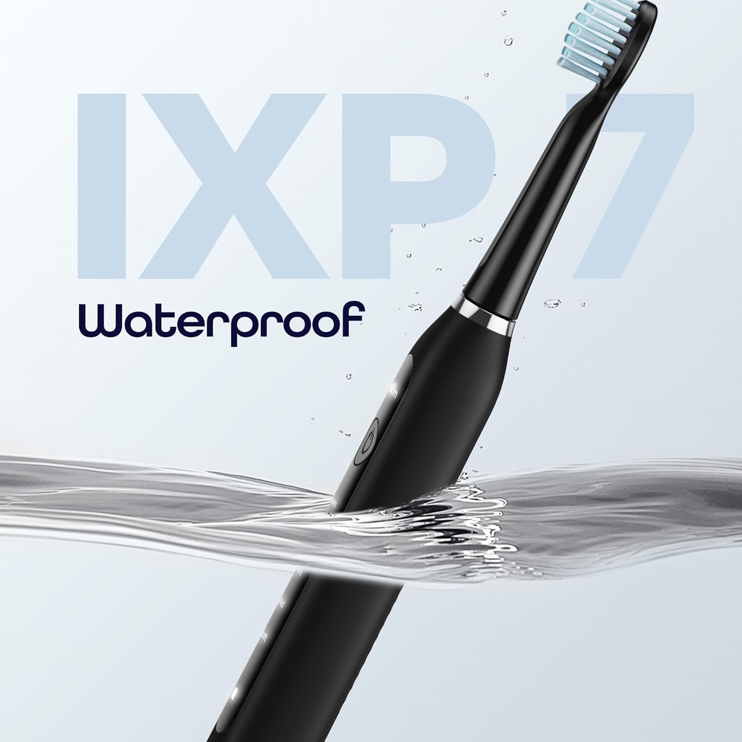 7AM2M Sonic Electric Toothbrush for Adults High Power Rechargeable Toothbrushes with 6 Brush Heads,5 Adjustable Modes, Built-in 2-Minute Smart Timer,3 Hours Fast Charge for 45Days Matte Black
