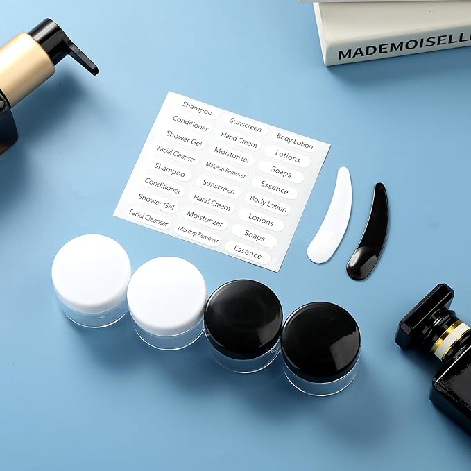 - Useful Travel Accessories: This is a oversize assortment of travel containers in a useful zip case. ( Come in 2 pcs Larege 6oz & 2pcs 3oz Travel Bottles + 4 Travel Jar s+ 2 Spray Bottles + 2 Scoopers + 1 Funnel + 1 Clean Brush + 1 Page Label + 1 Clear Toiletry Bag ) Multiple ones allow you take along different beauty products and toiletries according to your requirement