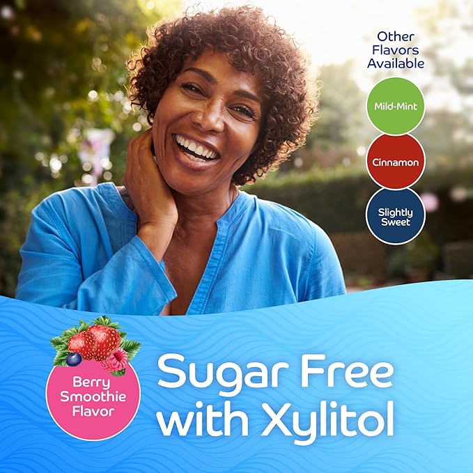- GREAT TASTE: Enjoy the berry smoothie flavor of XyliMelts, which release Xylitol to stimulate saliva, aiding bad breath and enhancing gum health with gum xylitol care