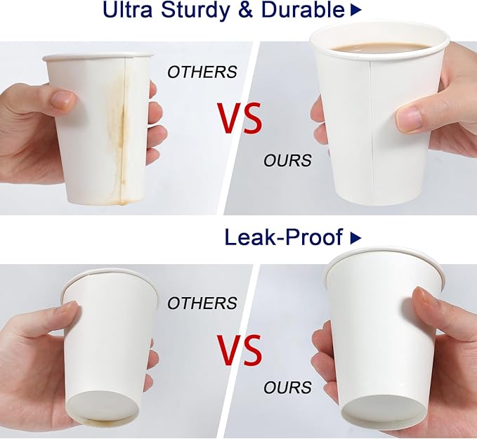 - Thickened Paper: The 12 oz white paper cup is made of thickened high quality paper and the rolled cup rim is firm and strong to prevent unwanted spills