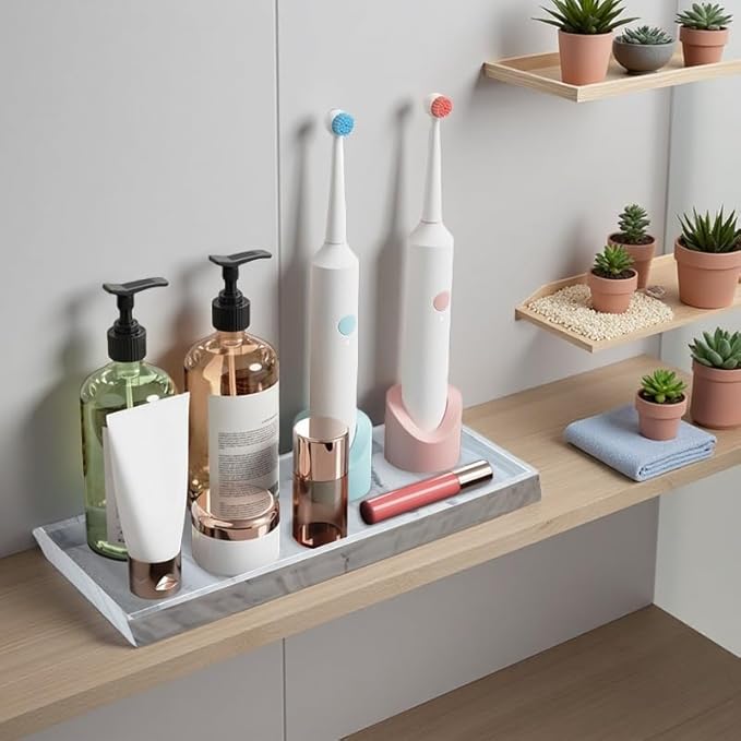 - 【Elegant Black & Marble Options】Choose from sleek black or marble-finish silicone to match any decor. The black vanity tray adds a modern touch, while the marble variant mimics natural stone for a luxurious look. Perfect as bathroom vanity trays for counter or kitchen sink trays for counter.