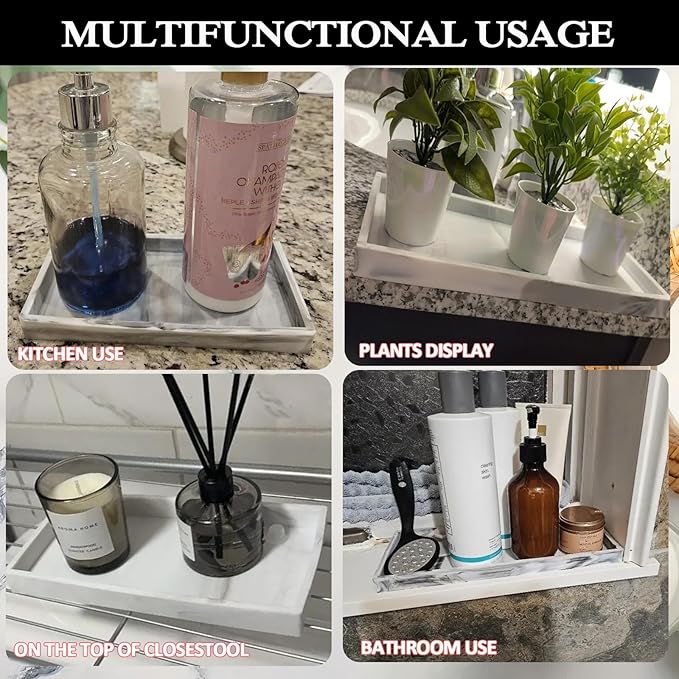 - 【Elegant Black & Marble Options】Choose from sleek black or marble-finish silicone to match any decor. The black vanity tray adds a modern touch, while the marble variant mimics natural stone for a luxurious look. Perfect as bathroom vanity trays for counter or kitchen sink trays for counter.
