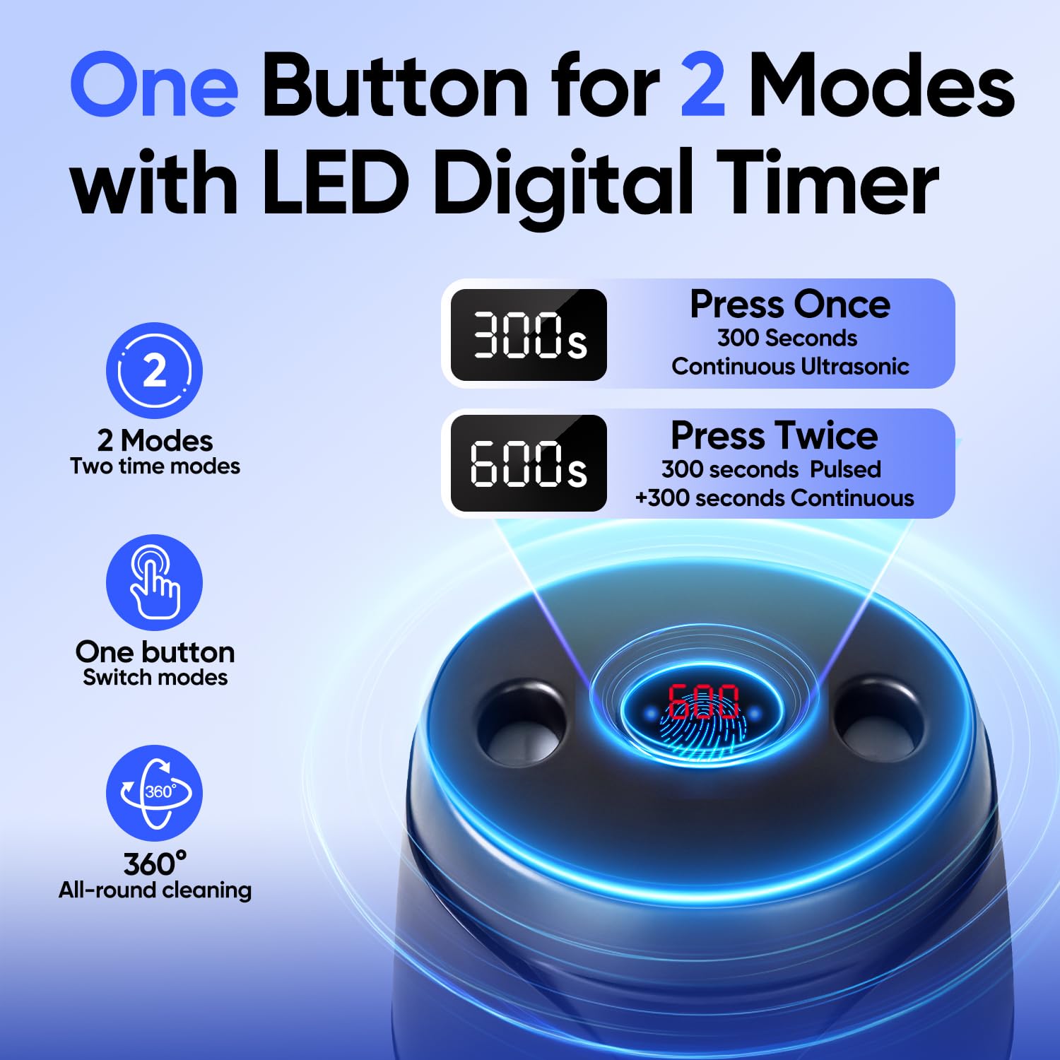 - DIGITAL DISPLAY– This digital ultrasonic cleaner features a countdown timer on top, allowing you to easily monitor the remaining cleaning time. When used as an earring cleaner, you can increase or decrease the cleaning time for valuable items, making it convenient and precise for different cleaning needs