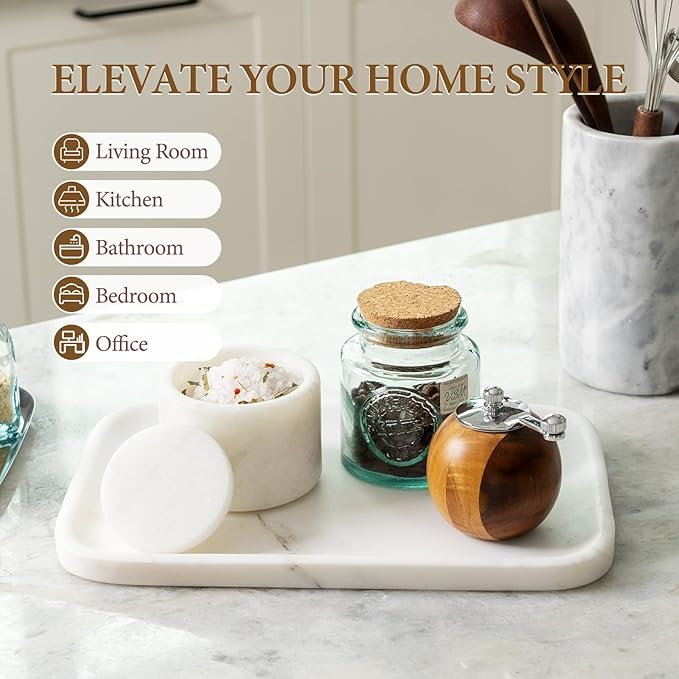 - 【100% Natural Marble】Koville Marble tray is made of high-quality natural marble. Each marble tray has its own unique texture, revealing the wonders of nature. This solid decorative tray ensures durability and long-lasting enjoyment, adding a touch of sophistication and luxury to your home decoration