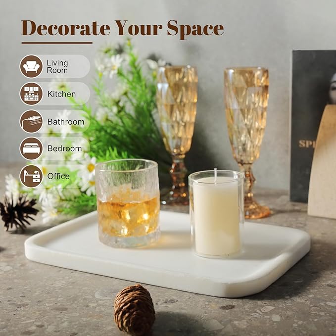 - 【Multi Purpose】This organizer tray can be used as a jewelry tray, perfume tray, cosmetic tray, key watch tray, or even a coffee tray. Whether kitchen, bedroom or living room counter, table or nightstand, this stone vanity tray fits in perfectly. The slightly raised edges of the stone tray can prevent items from falling