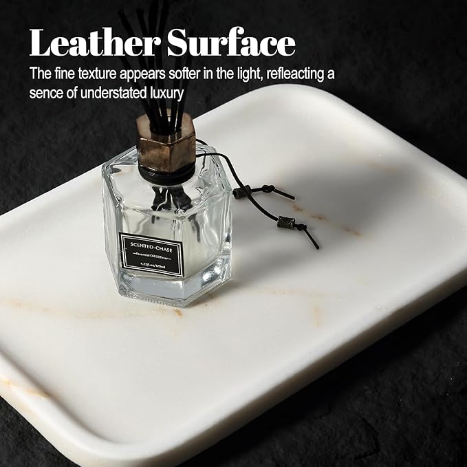 - 【Leather Suface】The decorative tray is use leather surface finishing process. The leather surface has a fine texture that is comfortable to the touch and more non-slip. It appears softer in the light, reflecting a sense of understated luxury