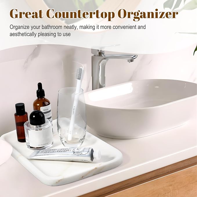 - 【Multi Purpose】This organizer tray can be used as a jewelry tray, perfume tray, cosmetic tray, key watch tray, or even a coffee tray. Whether kitchen, bedroom or living room counter, table or nightstand, this stone vanity tray fits in perfectly. The slightly raised edges of the stone tray can prevent items from falling
