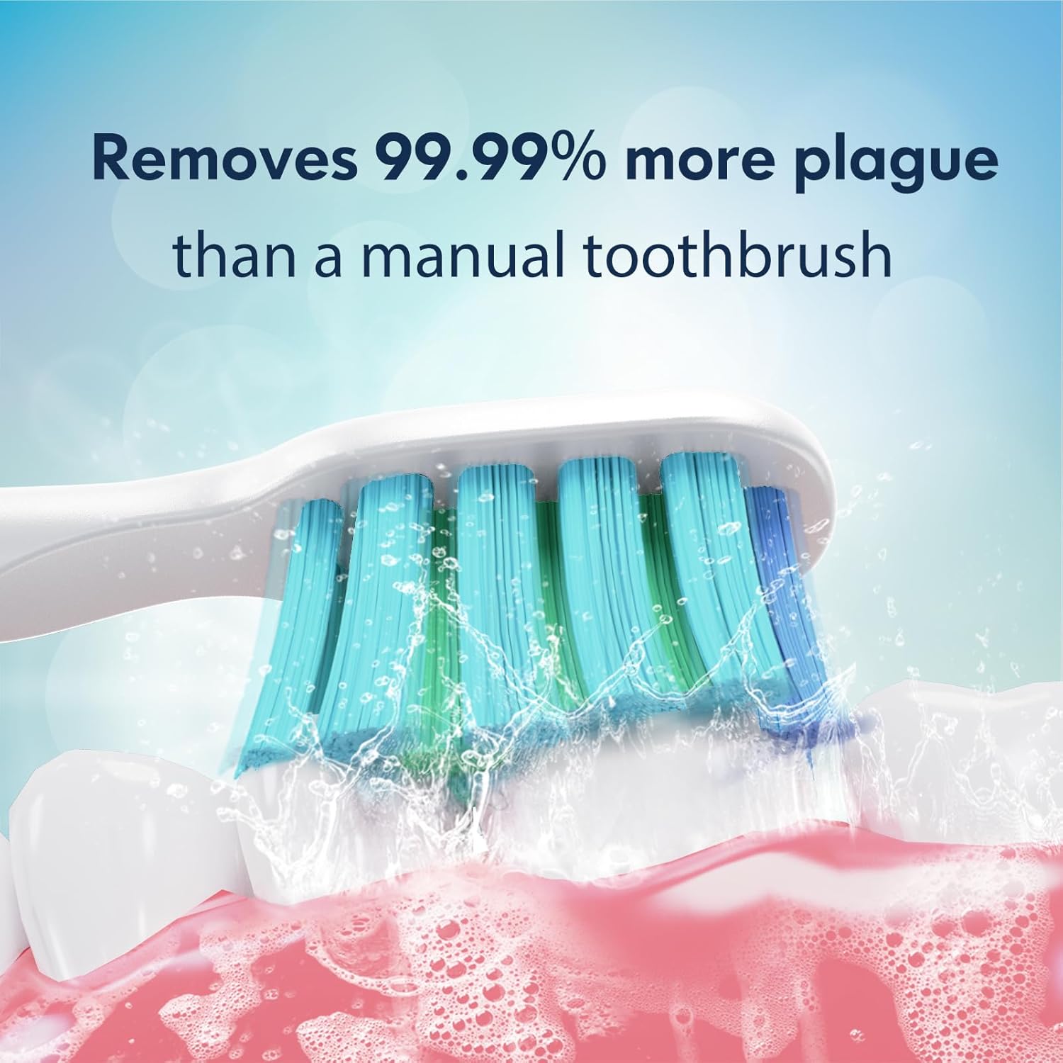 - Achieve Up to 99.99% Plaque Removal: Outfitted with an A+ grade sonic motor, our electric toothbrush delivers a robust 40,000 VPM of high-frequency vibrations. This formidable synergy of sonic waves and active bristles ensures thorough cleaning, deeply reaching along the gum line and between teeth to eradicate plaque and biofilm with an effectiveness 12 times greater than that of manual toothbrushes.
